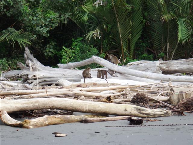 There were monkeys playing among them searching for titbits of food, we sat and watched them from the waters edge for a while.