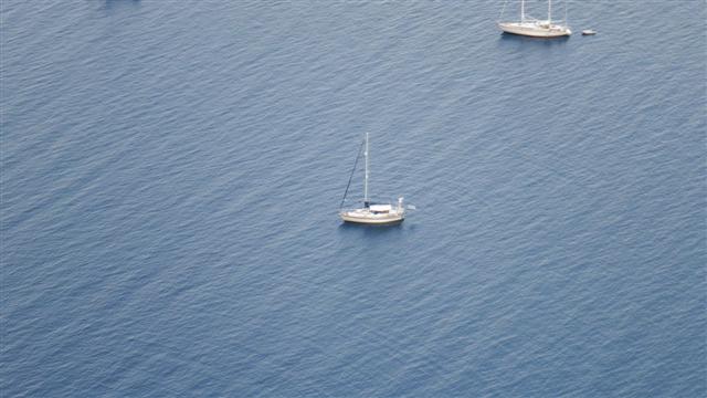 Our police escort was the last in and anchored across the entrance as a ‘plug’, the navy tied their boats (there were now two of them) to the wharf. The rally had been asked to anchor close together but unfortunately the organisers hadn’t realised that the area they wanted us to anchor in was 20m+. Bill’s normal policy is to find somewhere 10m or less but it went from 20m to reef so we didn’t have any option but to anchor in 20m. We were consoled by the fact that several of the yachts carried divers with tanks and compressors so if the anchor got stuck we could ask for their help. We anchored at