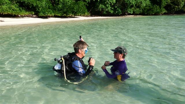 Our friends Jacqui and Dave on Jackster have their own diving kit on board and offered to give me a diving lesson later that day. Dave didn’t give me any chance to think about it because he knew I would have found an excuse but I didn’t and off we went to the beach.