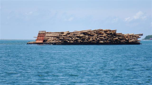 Once out the other side we continued on to the Kumpong river. There was lots of shipping although mainly tug and tows. Some locals had hitched a ride on this barge and this one was so overloaded it was difficult to see the barge underneath. It looked very unbalanced, no wonder there are so many logs floating around in this area.