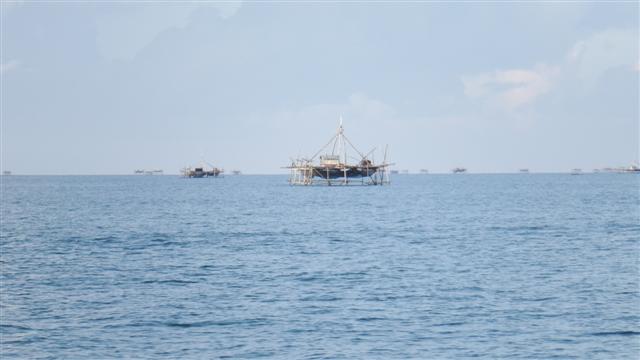 On the final leg to Tawau we discovered some structures that wouldn’t have looked out of place on a War of the Worlds film set. They are fishing traps, unlit of course, but quite visible being about 10 feet above the water level. What was more worrying was that there were some derelict ones with just a few stumps sticking out of the water. What was underneath the water in between them?