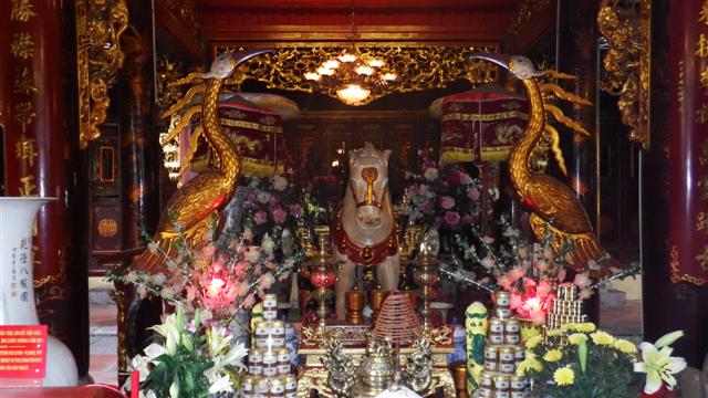 Heading south again we entered the Bach Ma temple said to be the oldest temple in the city with much of the current structure dating back to the 18th century. Emperor Ly Thai To built the original temple in the 11th century to honour a white horse that guided him to the site where he decided to construct his city walls that became Hanoi. There’s a beautiful statue of the legendary white horse inside.