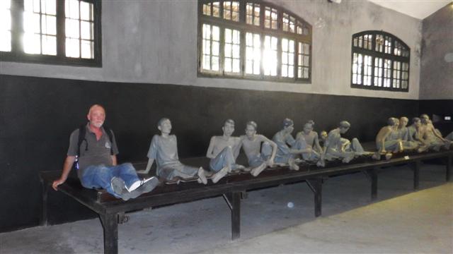 After lunch we walked to the Hoa Lo prison, which is now a museum and it was open – hooray. Built by the French in 1896 to hold around 450 prisoners but by the 1930s there were over 2000 detainees. It was also used to house downed US pilots during the war. Most of the original buildings have been demolished to make way for the Hanoi Central Tower buildings but enough of the old prison has been preserved to create the museum. There was a scary array of whips and other instruments of torture and the living conditions must have been horrendous. In contrast the section devoted to the American POW showed how well they were treated by the Vietnamese during their stay. Possibly propaganda but the photos showed unmarked well-fed Americans in contrast to the pictures of the ill-treated, under weight, Vietnamese at the hands of the French.