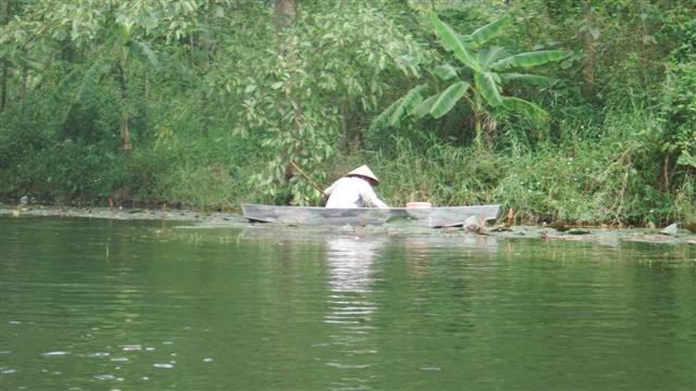 Having had enough of the continuous traffic we decided to spend our third day in Hanoi out of the city and booked a tour to the Perfumed Pagoda. The complex actually consists of around 30 Buddhist shines but we only managed to see two of them. The day started with a bus ride to My Duc, a township on the Suoi Yen river where everyone was loaded into metal rowboats for the hour’s journey up the river. Traditionally women row these boats.
