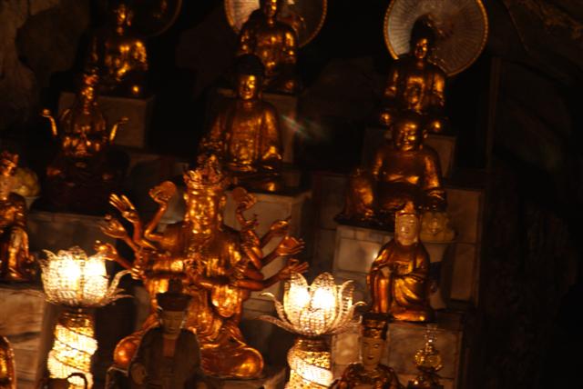 120 steps lead down into the deep cavern filled with incense smoke and gilded figurines of the Buddha and Quan Am, goddess of Mercy. It was an amazing place.