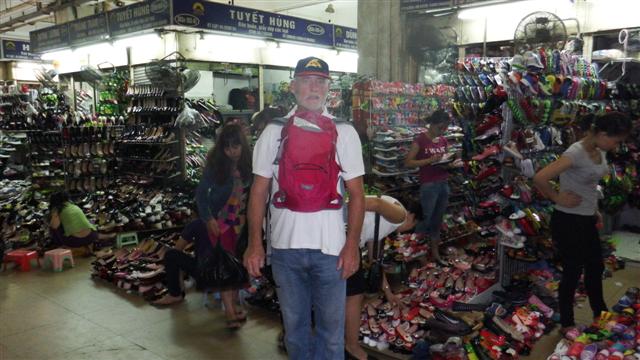 The original name for the area 36 streets because in the 13th century Hanoi’s 36 guilds established themselves there each taking a different street. They were each names Hang, meaning merchandise, followed by the word for the product they sold. There are over 50 streets now but many of them have continued to sell the same products. The first street we came to was Hang Dau which contained most of Hanoi’s shoe shops – how lucky was that!! Thought of my sister when I saw this shop.