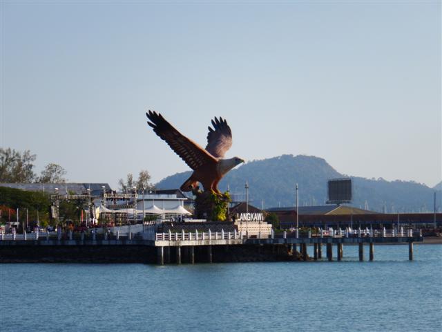 After our wonderful Christmas at Rebak Camomile and Norsa left the marina on 27th December and headed to Kuah on the main island. As Langkawi is a duty island we restocked with wine and visited the supermarket before checking out of Malaysia. This huge statue of a sea eagle dominates the harbour and is the emblem of Langkawi. The place to see them is at the ‘Hole in the Wall’ anchorage on the north side of the island so before we headed north to Thailand it was decided that a day or two there would be nice. Langkawi isn’t very big and it only took about 3 hours to motor around.