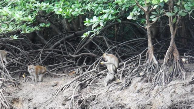 Even further upstream it started to shallow off but we spotted some monkeys on the bank. Unfortunately they saw us and started following us. One of the tourist boats warned us about letting them get onboard so we watched from a safe distance.