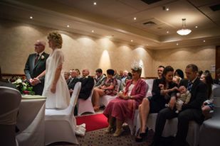 The ceremony room was already starting to fill up with family and friends.