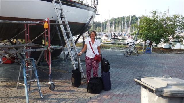 I spent the rest of the day carrying the cockpit cushions and the saloon seating down to Norsa. Bill intends to do some sanding inside the boat while I’m away and I don’t want them covered with dust. I also washed all the curtains and scatter cushions and took them to Norsa to store too and a box of my clothes and a box of bedding. Thanks Sara.