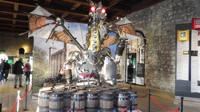 This amazing sculpture is made from weapons and armour, very clever.