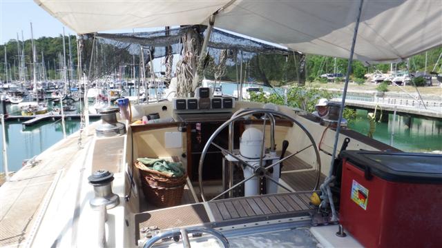 We started striping the cockpit beginning with the cover and framework. The intention is to take the cover back to CJ Marine in the UK to have a new one made. They made the original but we’ve had some modifications made to it along the way that we want them to copy.