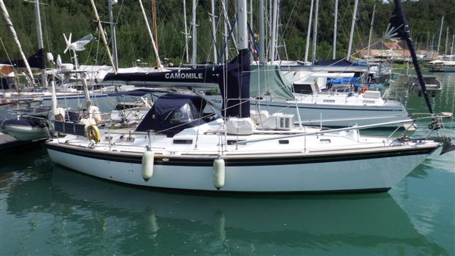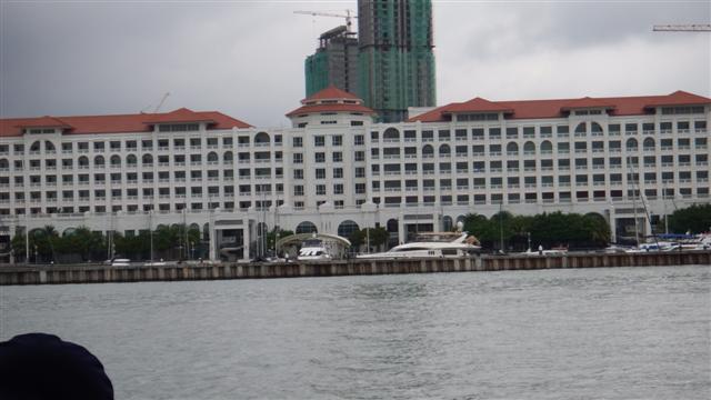 Saturday 13th was a long day. We left at 7.00 and arrived at Pangkor island just before 8pm, apart from an hours sail in the morning we had motored all the way. We’d lost sight of Juffa during the day but our friends Terry and Alison on Panir from Rebak came up behind us and called on the vhf for a chat. Panir and Camomile anchored just north of Pangkor island at 04˚15.5N 100˚33.5E. As the south west monsoon season is upon us this should have been a good anchorage but on this one night only the wind decided to swing round to the north and blow into a storm. Bill was up half the night checking the anchor and Camomile was tossing in the waves but fortunately the anchor held firm. Winds of 30kts+ were blowing across the decks. By 3am Bill decided we couldn’t stay there so we got ready to move the boat, which wasn’t going to be easy. Just at that moment the heavens opened and the visibility was almost zero so we decided to wait until it stopped raining. I went back to bed and luckily the wind started to die down. Within an hour Bill came back to bed and said we would wait until first light to move. In the morning the storm clouds had gone and the skies cleared. We motored the short distance round the island to Pankor marina where our good friends Gary and Jackie on Inspiration Lady had been waiting for us. Our little group was growing.