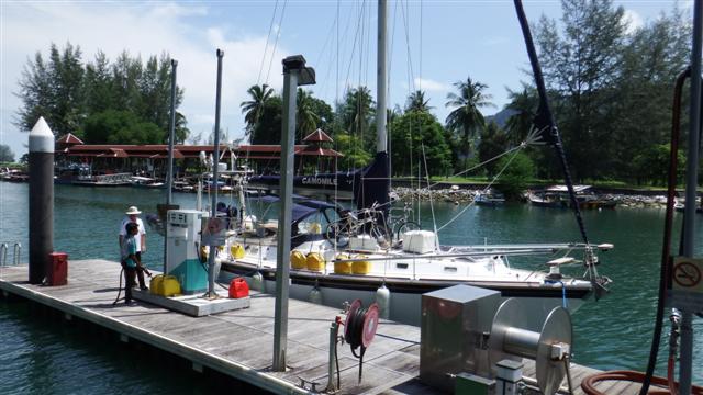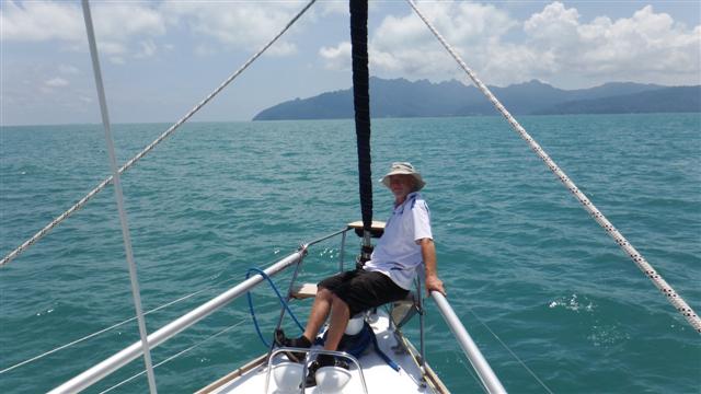 Bill enjoying the view from the new dolphin seat he made. It felt good to be out in the beautiful blue sea again. The first part of our journey only took an hour as we headed to Tulaga on mainland Langkawi for fuel.