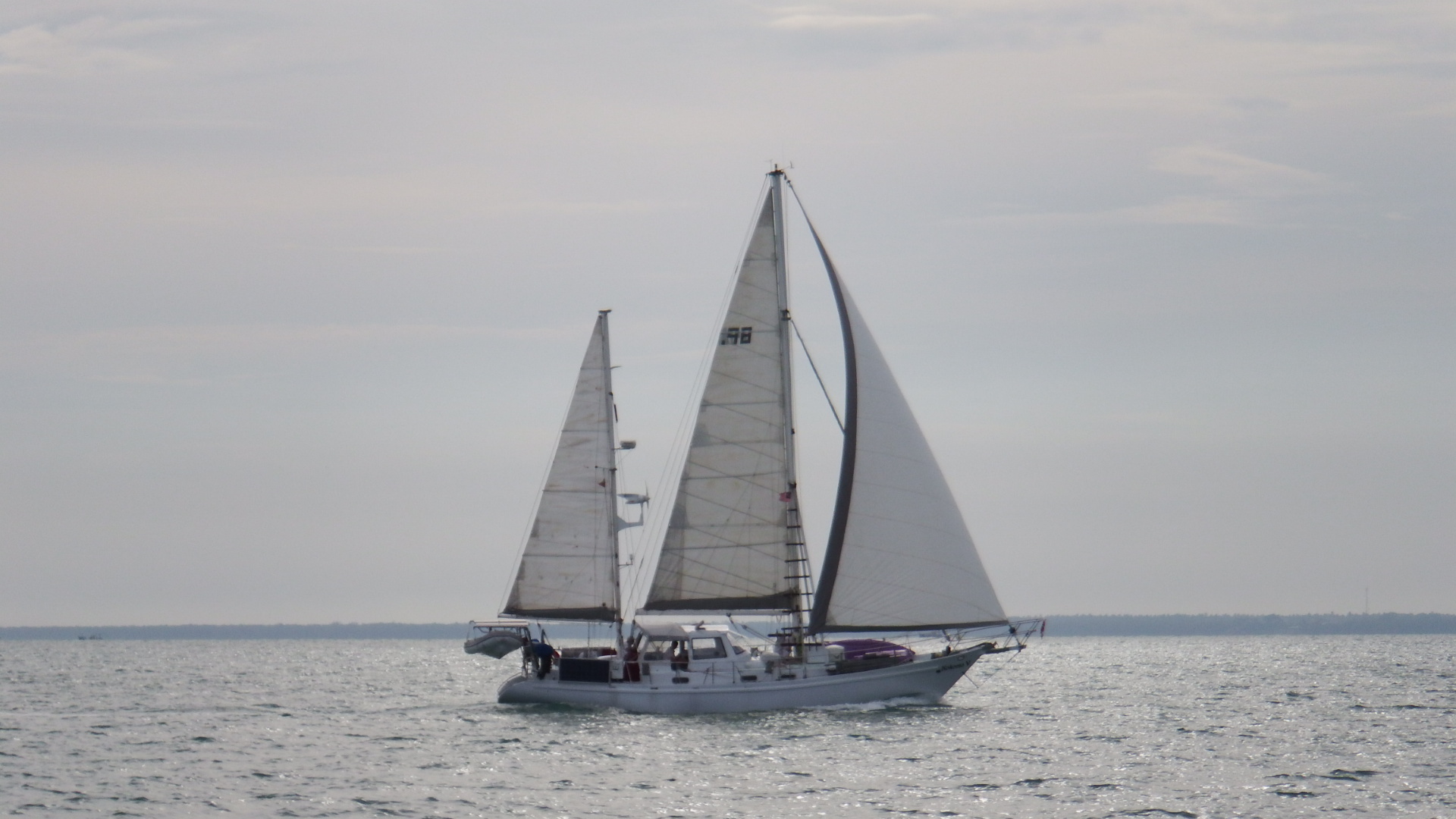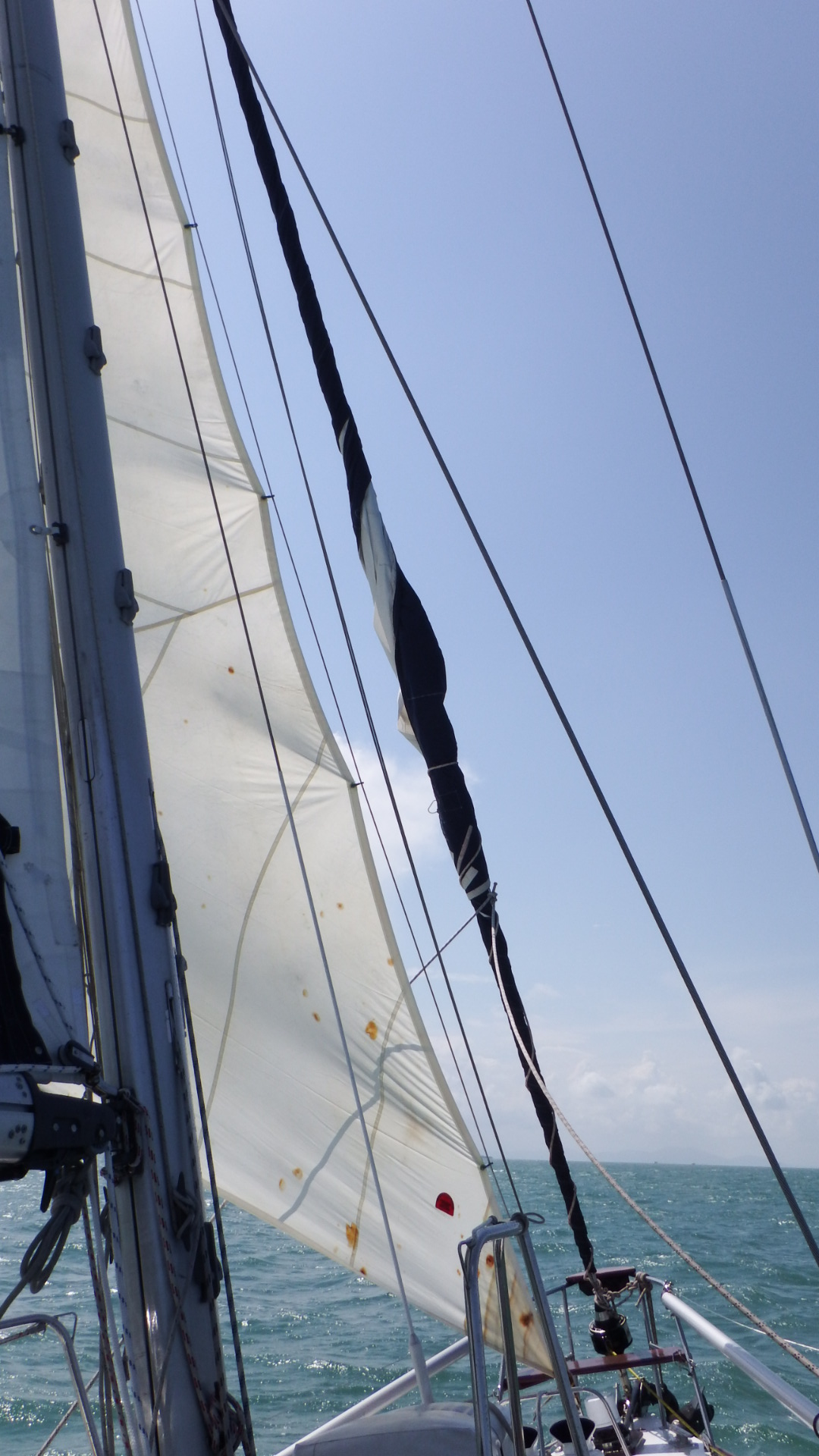 Bill wanted to get the new reefing lines in before we headed south so Saturday 6th he spent quite a bit of the day rerunning them in and out of the boom while I sat writing. Once he’d finished we raised the sail to check all was ok and thankfully, with a few minor adjustments, everything was fine.