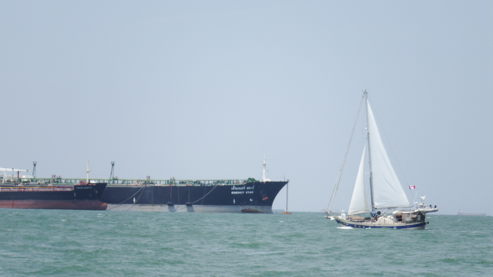 Sunday 7th we finally left Langkawi. I was beginning to think we wouldn’t ever get away. Camomile motored through this gap and headed south for 60 miles. After all the playing with the main before we left there wasn’t any wind and we only managed to sail one hour of the 12 hour passage.
