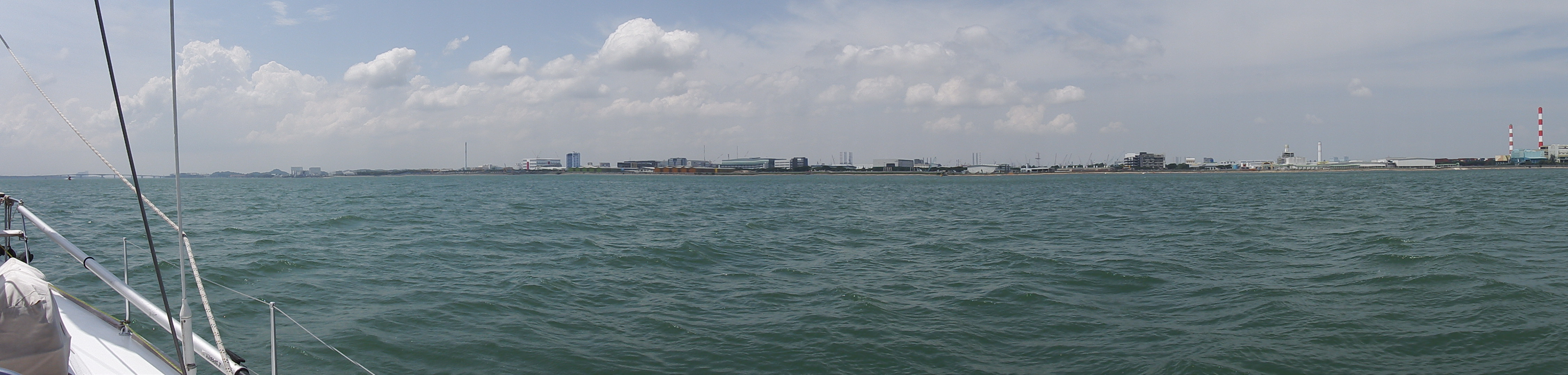 Within an hour or so the storm clouds past over us and the sky cleared. Panang island is only about 15 miles long but has 2 bridge crossings from the mainland. We passed under both of them but decided to stop for the night. If we carried on it would almost certainly mean a night sail and with the storms in this area that wasn’t an inviting prospect. There’s a saying ‘It’s better to be in an anchorage wishing you were at sea than at sea wishing you were in an anchorage’. We went back into the Jerejak anchorage for the night with a plan to leave at first light. Juffa stopped a bit further down too. The high tides at the present are dragging a lot of rubbish into the water. This strange object floated past us in the evening. I think it’s part of a tree.