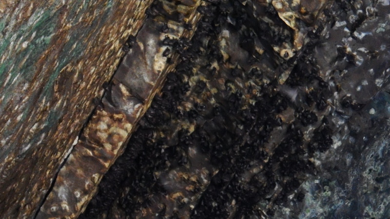 On the east side I spotted a cave and on closer examination from the entrance discovered it was full of bats. Not sure if you can see from this photo but the top of the cave was covered in them; very noisy and very smelly.