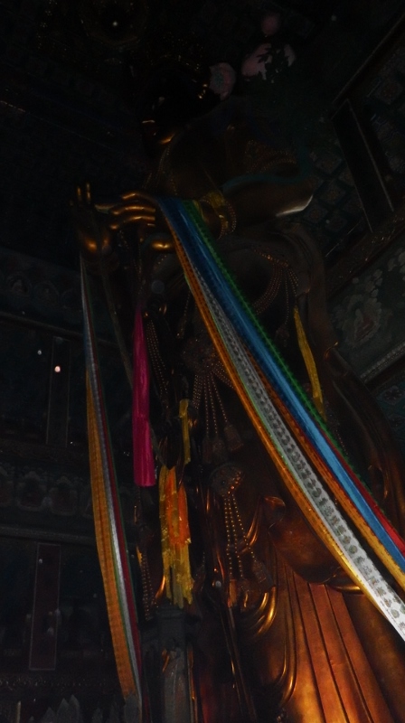 Inside the fourth hall, with a catchy little title of ‘Hall of the Wheel of Law’, was a substantial bronze statue of a benign and smiling Tsong Khapa (1357 – 1419) founder of the Gelugpa or yellow hat sect dressed in yellow and illuminated by a skylight.