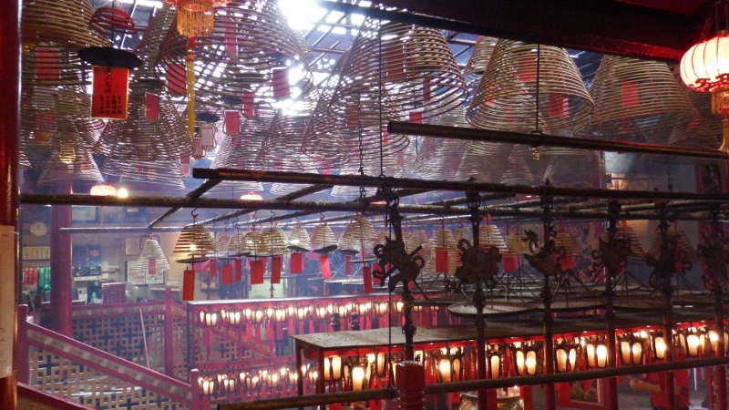 We visited several old temples but this is the Man Mo temple, it was the centre of civil life in the 19th century. It was built between 1847 and 1862 by Chinese merchants and dedicated to the gods of literature ‘man’ and of war ‘mo’. Back in the early colonial days the government only accepted oaths taken here rather than in a court of law. Smoke curls from giant spirals of incense hanging from the ceiling that contain paper offerings to the dead. The atmosphere was very thick with incense inside and we couldn’t stay in there long.