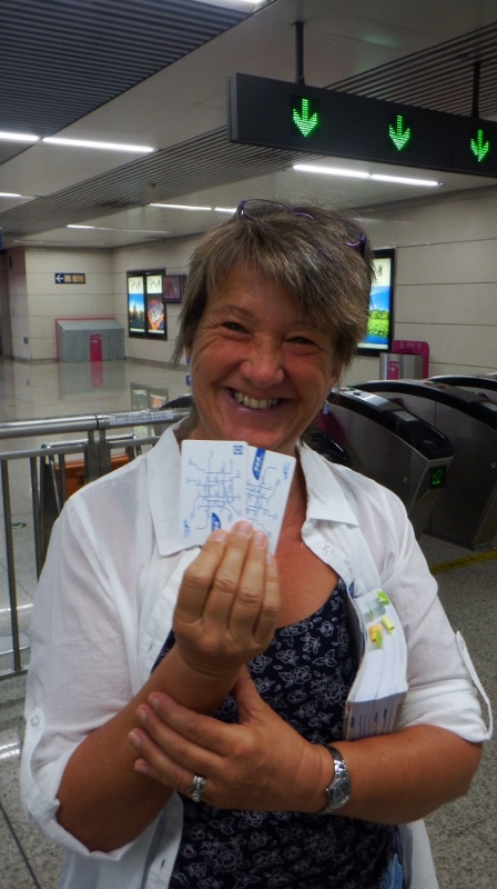 Just down the road from the Confucius temple was the Confucius café where I had a delicious hot coffee to warm me up – strange concept for us, and lunch. Then it was back to the Metro for another ride. It was only 3 stops south on line 4 but we are taking things in small hops. The ticket machine wasn’t going to beat me this time. Bill and I had been discussing this infernal machine and worked out that the numbers along the top were the route lines and you needed to pick a line before it gave you the option to choose which station. Sure enough that’s what it needed, I chose our station, taped 2 for 2 tickets, fed the machine 4 yuan (about 40p) and hey presto out came 2 tickets – cracked it!