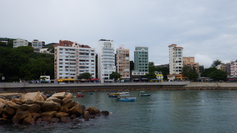 Back to the MRT and onto Exchange square to catch the No6 bus out to the seaside town of Stanley. It was a great journey for just $8.40 each about 70p. Once we’d left the city the road weaved through much smaller towns with lovely views across Repulse bay. It was a double decker and we sat upstairs to get a good view. There were quite a few upmarket apartment blocks that would have had wonderful views across the bay. The journey took about an hour and was a good ride.