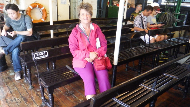 The Star ferry was started in 1898 by a gentleman called Mr Dorabjee Nowrojee. At that time the only people allowed on the first class upper deck were Europeans and a collar and tie was mandatory. These days any one can enjoy the 10 minute journey and at $2.50 a little over 20p, it must be the cheapest cruise in the world. The present 1960’s fleet are still berthed in the same fashion with a hemp rope being caught by a billhook. The ferry has two entry points without a public stairway between the two floors. We inadvertently got on the lower deck and rode as second class passengers. It was still raining.