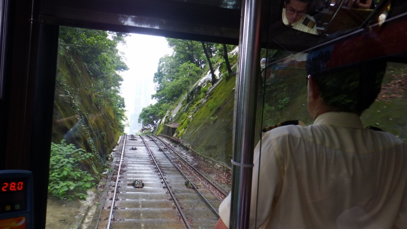 As today is our last day in Hong Kong we were going to try and mop up the things that we’ve missed. It was still cloudy, I’m going to get SAD syndrome if I stay here much longer, but it wasn’t raining so it was the Peak tram first. Having been there once already we knew the way and walked straight down there. The gates were open – we were in luck. There a good display in the entrance of the workings. The gravity-defying Peak tram was the first funicular railway in Asia and has trundled up the side of Victoria peak at a steep 27˚ incline for over a century.