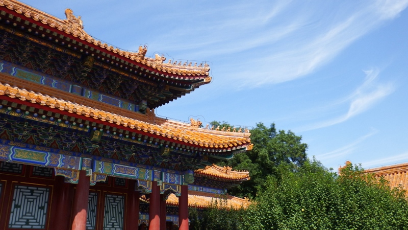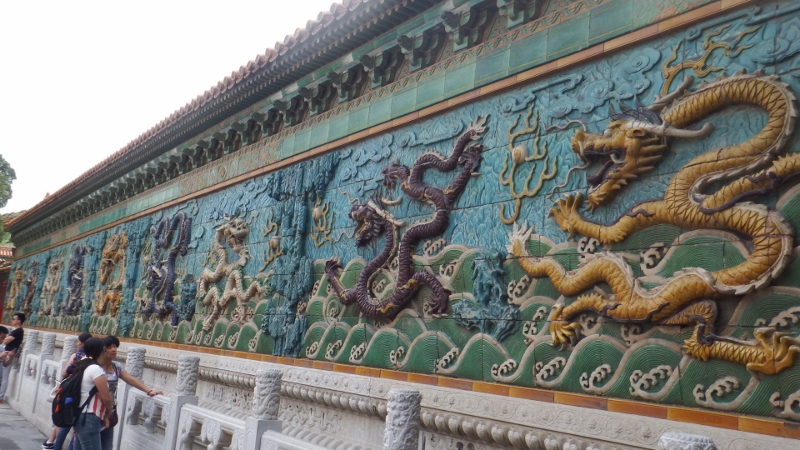 From this narrow courtyard gates lead to the east and west. We took the east gate towards the Complete Palace of Peace and Longevity, a mini Forbidden city constructed along the eastern axis of the main complex. At the entrance stands the beautiful glazed nine dragon screen, one of only three left in China. The five clawed dragon represented the power of the Emperor and could only adorn his imperial buildings. The Chinese dragon is a beneficent beast offering protection and good luck, hence its depiction on screens and marble carriageways.