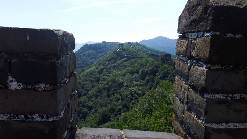 Famed for its Ming-era guard towers, of which there were 10 in the section we walked, the wall is largely a recently restored Ming dynasty structure that was built upon a earlier Qi-dynasty edifice. The watchtowers served as signal towers, forts, living quarters and storerooms for provisions. They were spaced two arrow shots apart to leave no part unprotected (I was lucky to get this shot without any one in it).