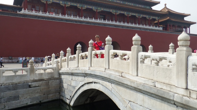 Tuesday 8th September was our last day in Beijing and we intended to spend it in the forbidden city. First we checked out of our hotel and put our bags in their baggage store. I had found 161 Hotel on www.bookings.com and had been pleased with it. The three young girls on the front desk spoke very good English as had the lady on the tour desk. As I’ve said before it was 2 blocks down from the Dongsi metro station and was set in an area that had some nice places to eat. It was set among a hutong area which looked a bit grotty but once inside it was very comfortable. Our room was on the fifth floor without a lift but it was ok because they call the ground floor the first, small flight of stairs to second floor, no fourth floor (Chinese are superstitious of the number 4) so there was only 2½ flights of stairs to climb. Our view wasn’t brilliant, we looked out over the roofs of the adjoining buildings, but the room had only cost us the equivalent of £154 for 4 nights which we felt was good value and we had only been there in the evenings. The bed was a bit firm but the bathroom was clean. I would stay there again and would recommend it to others.