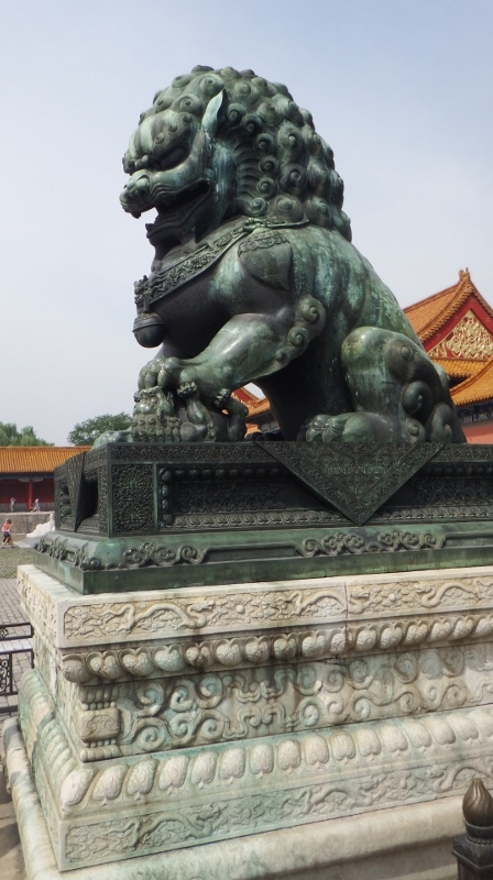 In front of us was the Gate of Supreme Harmony with a pair of Chinese lions guarding the entrance to the halls. The male is portrayed with a globe under his paw representing the emperor’s power over the world. The female has her paw on a baby lion representing the emperor’s fertility.