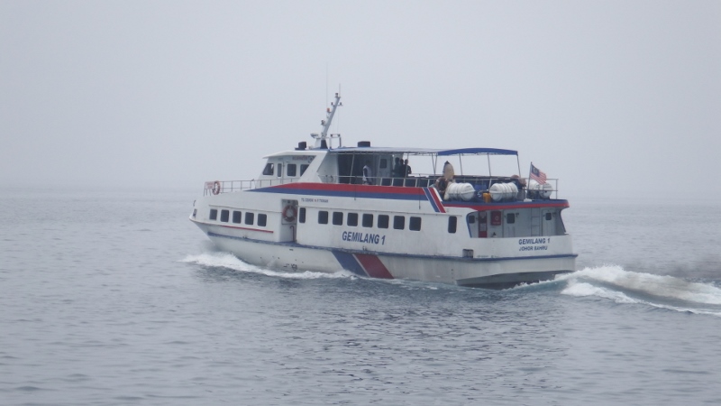 Thursday 15th we checked out of Puteri harbour marina for the last time. During the last 2 years we’ve stayed there 4 times and always been made to feel welcome. On our own we made our way back down the Johor straits and anchored by the container terminal overnight at