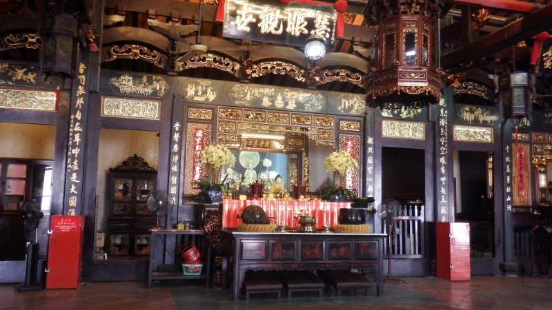 Having spent our afternoon wandering around the Chinese quarter we came to the Cheng Hoon Teng Temple which in Malaysia’s oldest traditional Chinese temple dating from 1646 and is still a central place of worship. The beautifully carved woodwork was very intricate