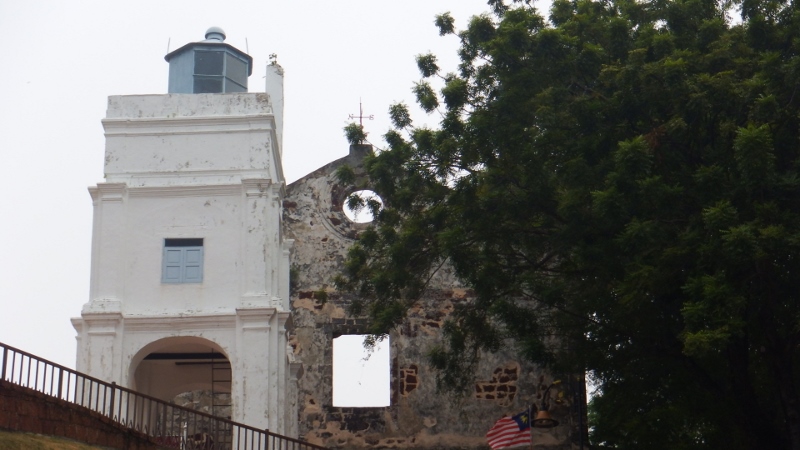 There are several churches in the area. On the hill above the Stadhuys complex is St Paul’s church originally built by a Portuguese captain in 1521. The church offers great views apparently but with the smog we couldn’t see very far. When the Dutch completed their own church St Paul’s fell into disuse. It’s had various uses since then including a lighthouse and a store for gunpowder but it’s been in ruins for more than 150 years.