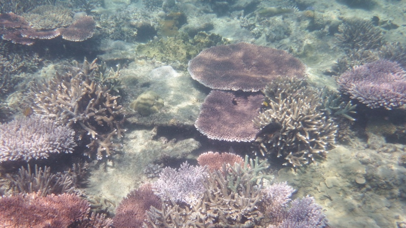 Even without the sun the colours were amazing and so many fish.