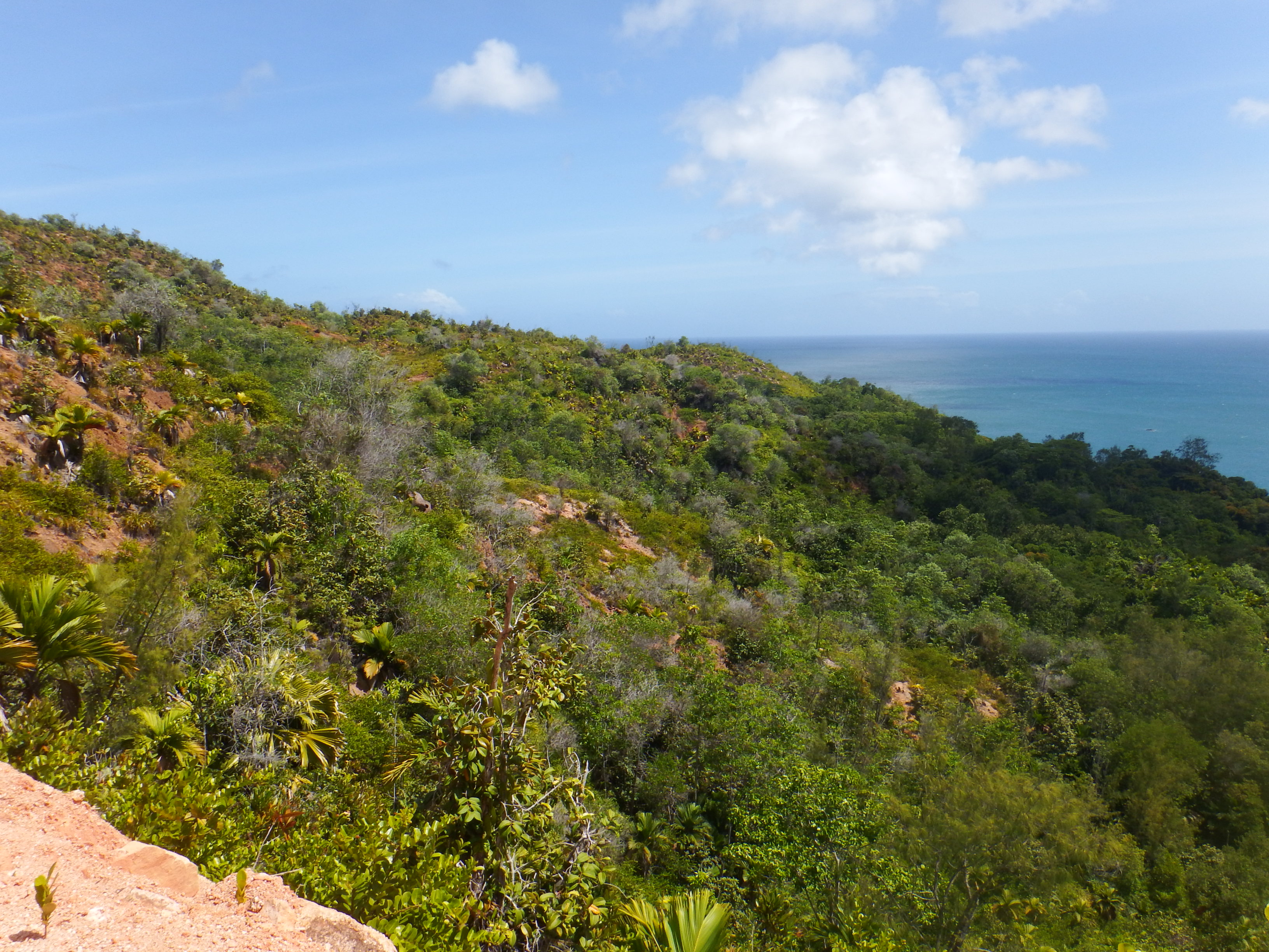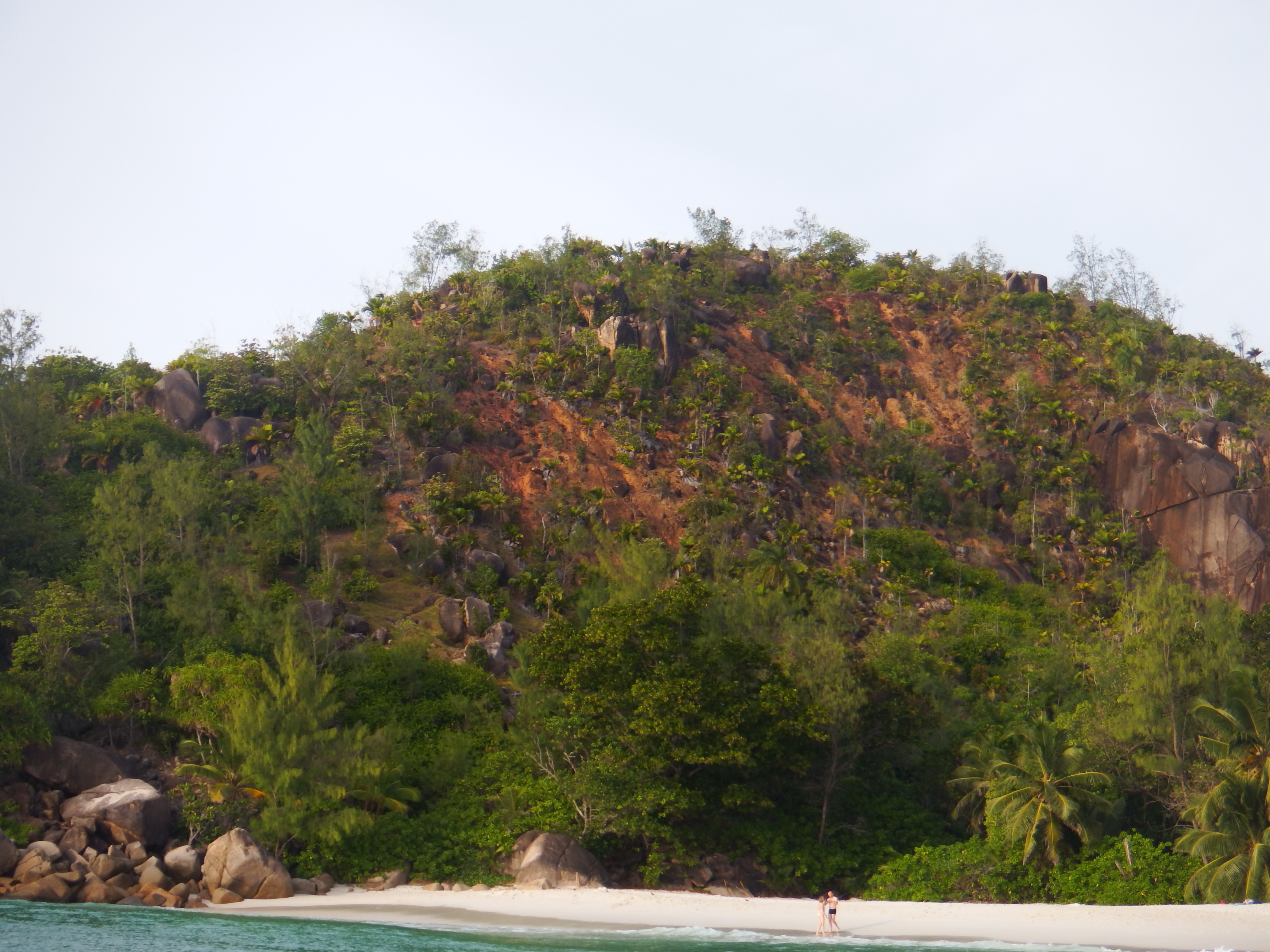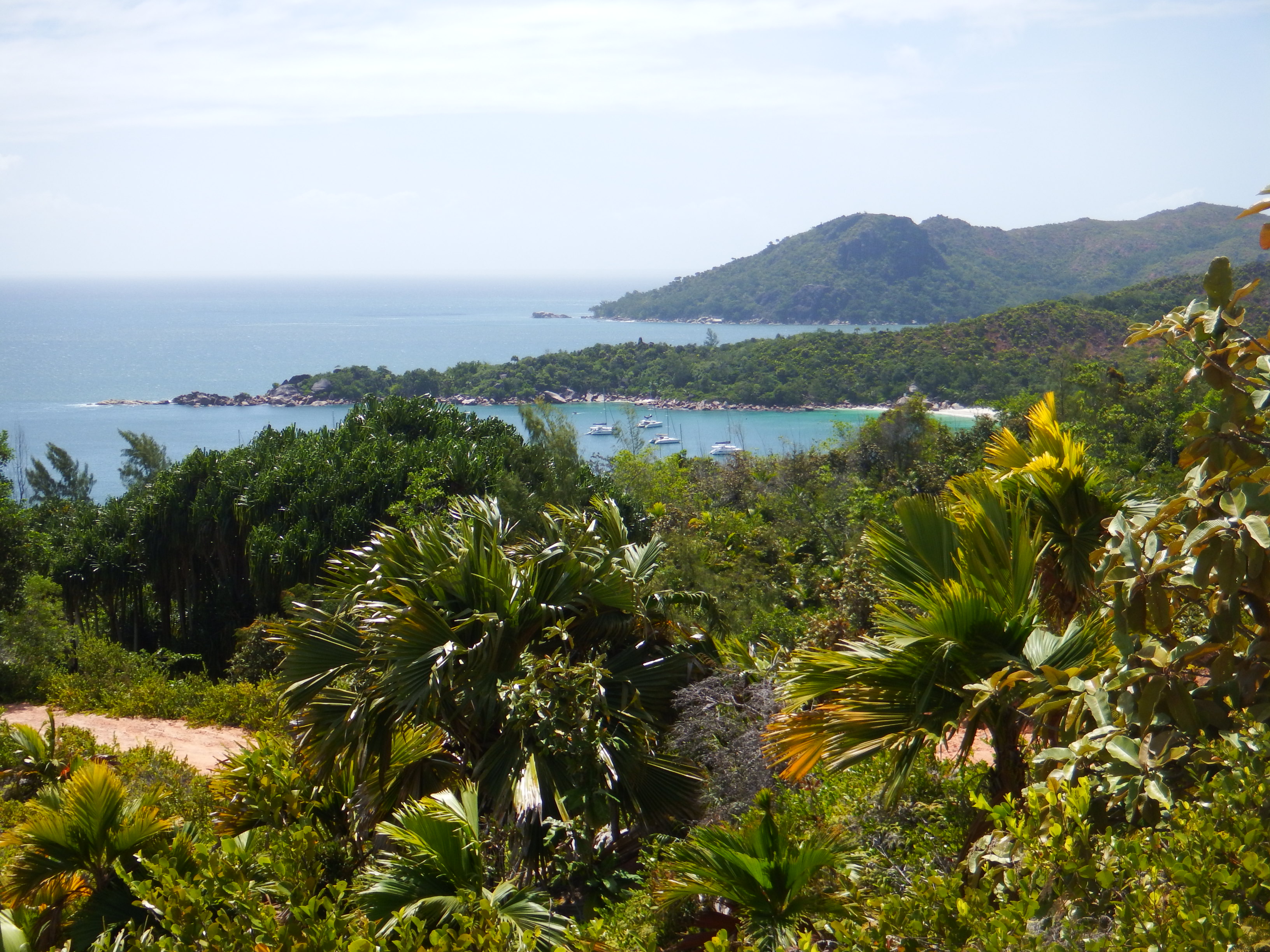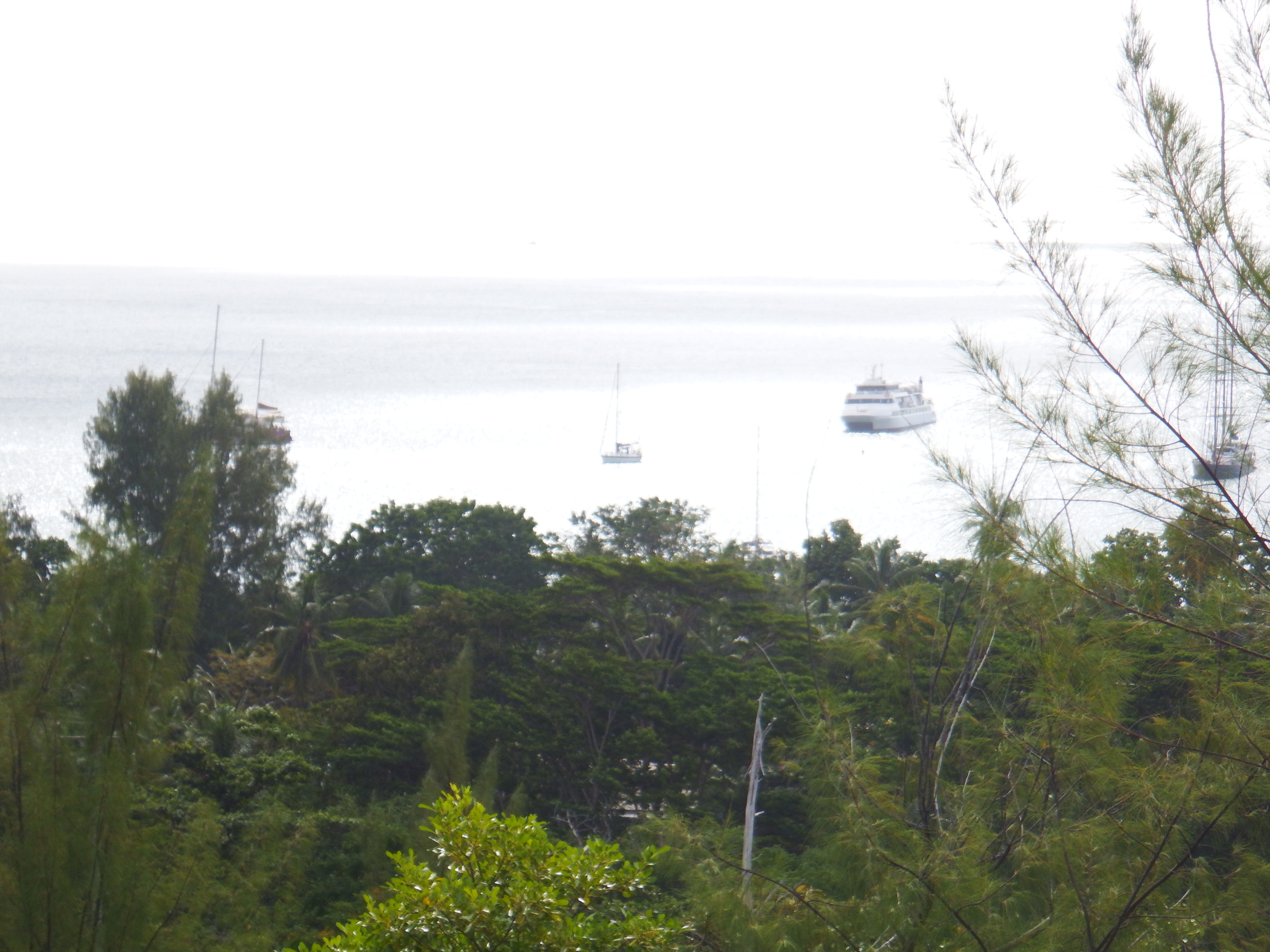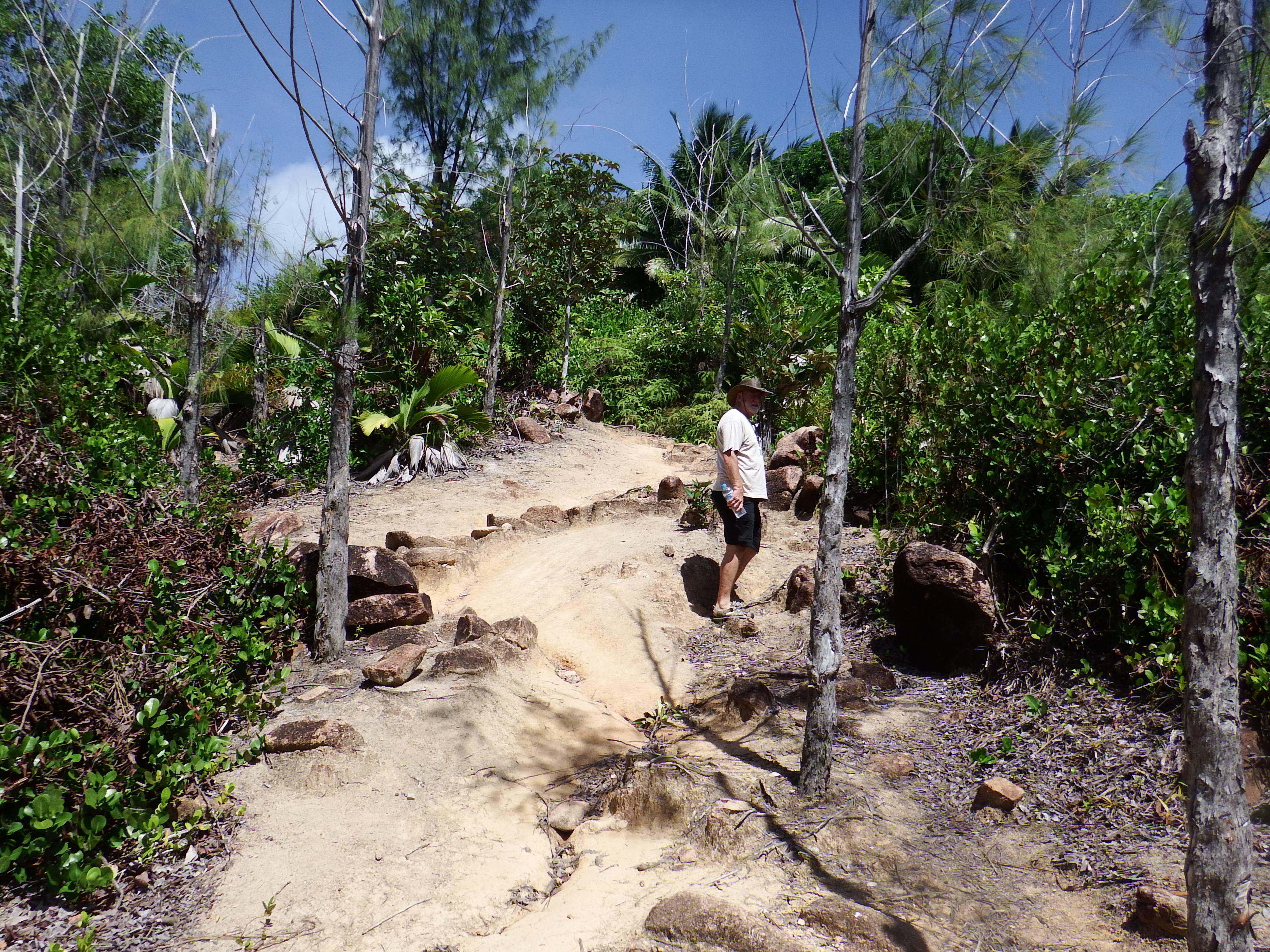 On the Sunday we decided to go exploring. We had been told of a nice walk over the hills to the south side of the island, continue to walk to anse Georgette and back across the hills on the ridge walk to our anchorage. We needed some exercise so off we went. For future cruisers as you look at the beach the entrance to the track is at the end of the right hand side of the beach. There’s an arrow painted on the rock.