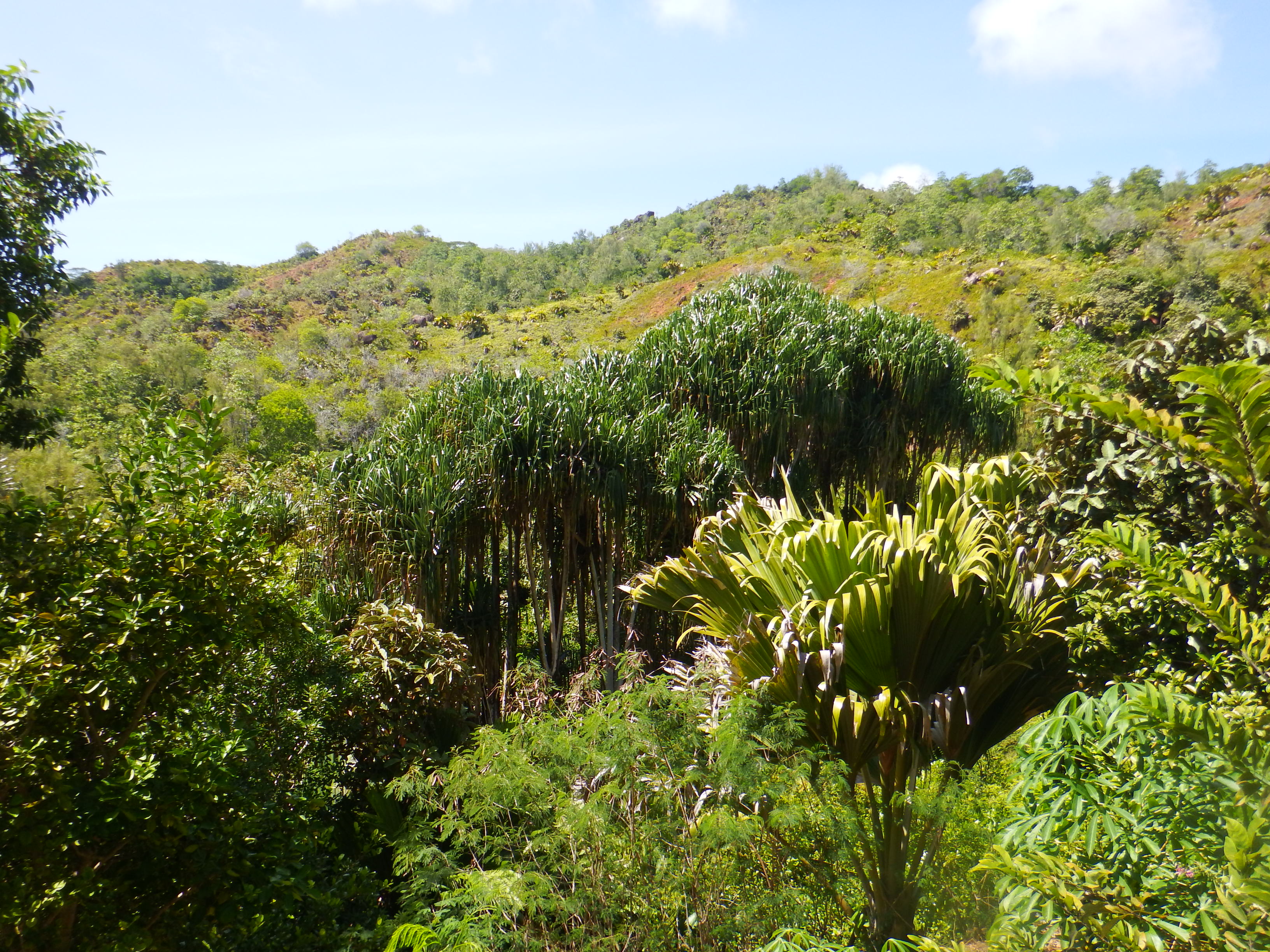 We all walked back down the road to the Copolia walk which took us about half an hour. The scenery was stunning as we walked passed endemic palms, trees and screwpines. The traffic was very infrequent so it was a pleasant walk.