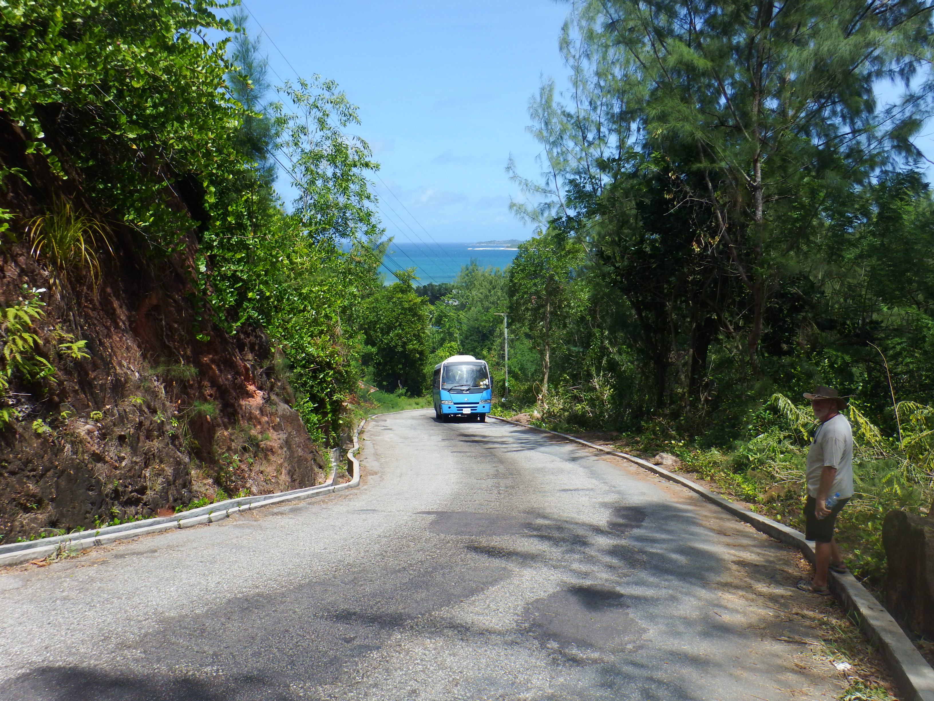 The next morning, gluttons for punishment, we walked back over the hill again but only as far as the bus stop. We took the bus to Grand Anse which is the largest settlement on Praslin. There are several hotels and restaurants, not to mention a very nice coffee shop, as well as a branch of the STC supermarket chain.