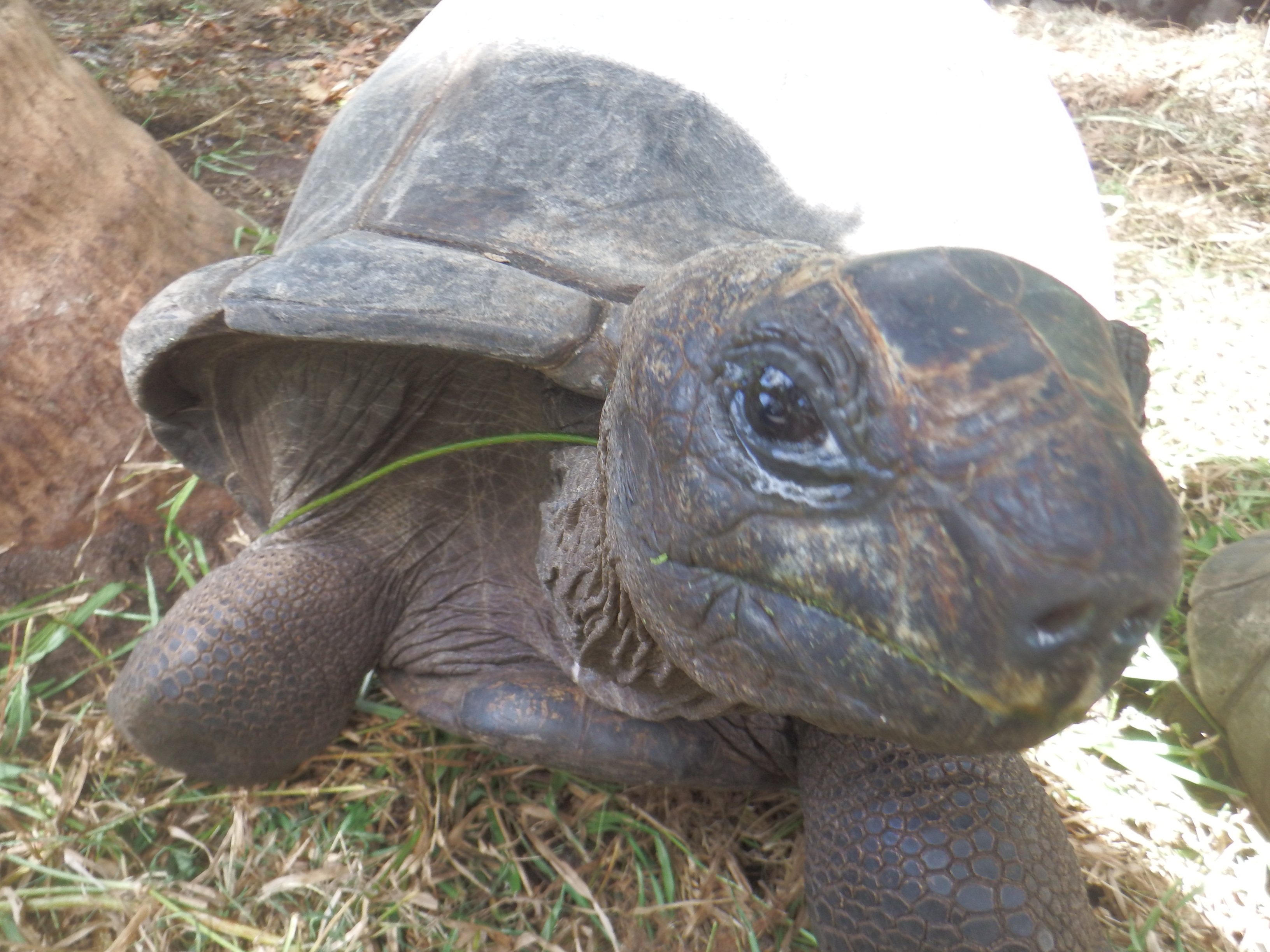 In the gardens of one of the restaurants at Lazio they have some giant tortoises. They are lovely old things moving slowly to the next piece of food. Their shells are the size of a good sized dustbin lid. There were about a dozen of them. Not sure how old they are but there’re another things Seychelles is famous for.