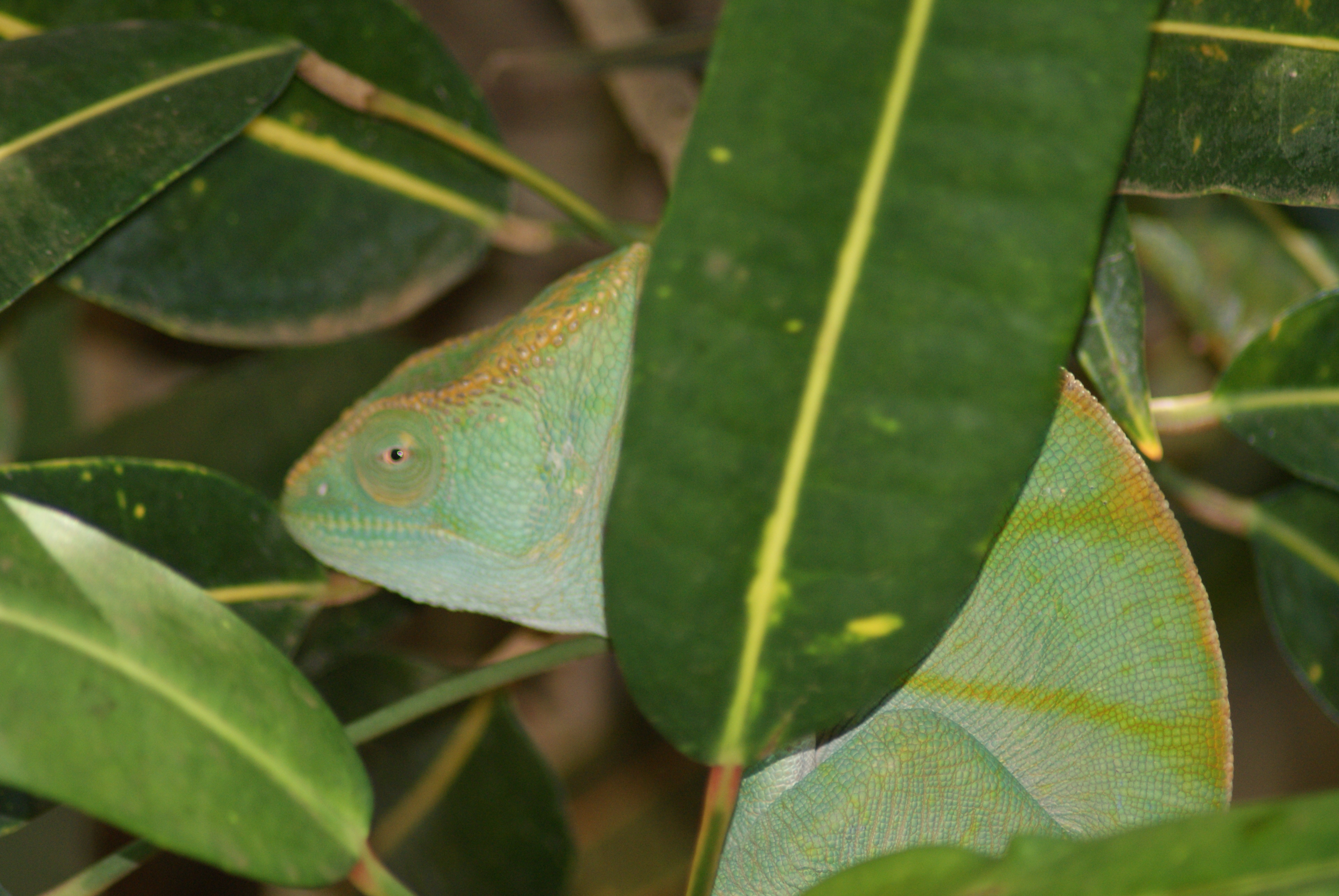We walked further up and saw this beautiful chameleon on a tree.