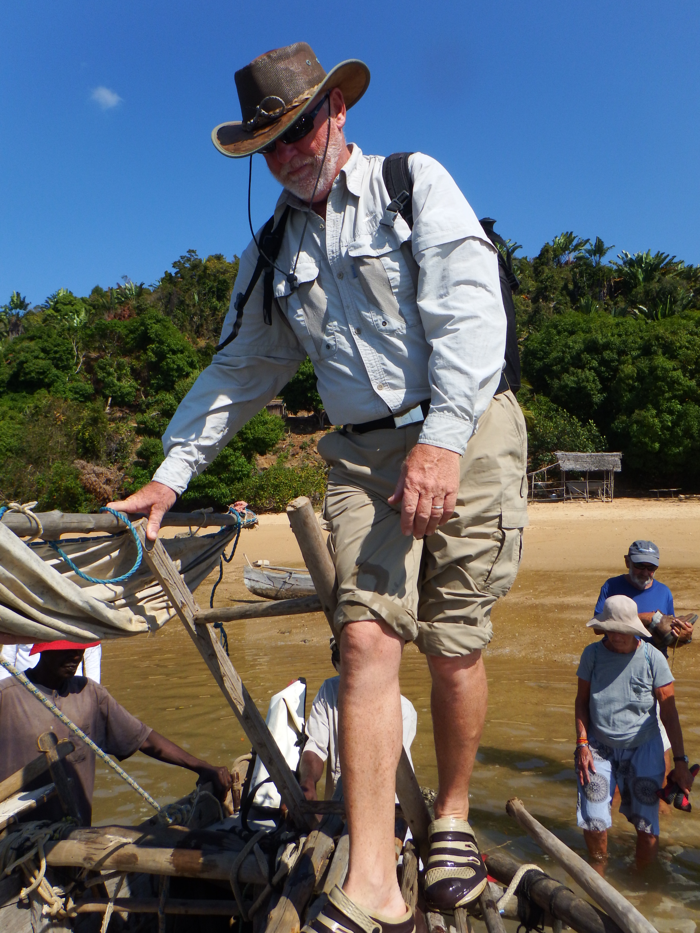 Back on the beach this local boat was anchored. It’s made almost entirely in local materials, the hull is made of wood, the mast is a tree trunk and the sail is made of a very tough cotton. Further up the beach was a local boat builder and Bill was fascinated to see the various stages of build.