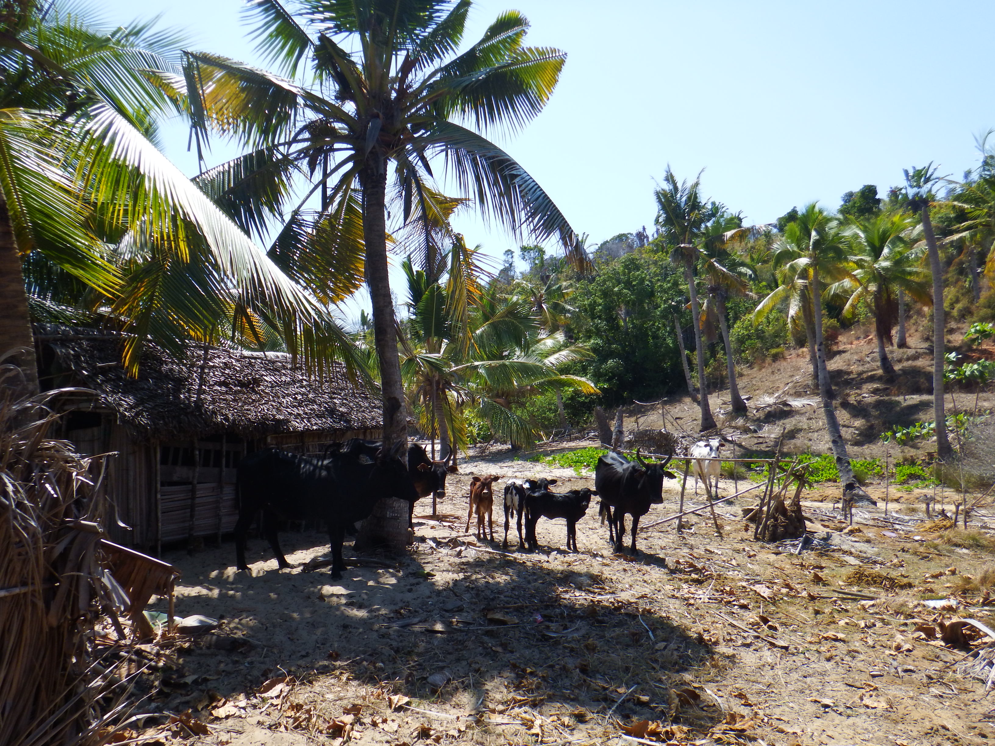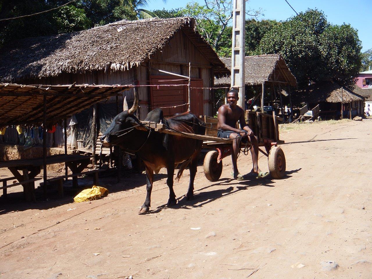 Monday morning we went in search of fresh supplies. It’s a 20 minute walk to the road along a dirt track. The houses were very primitive. Zebu carts were being used again.