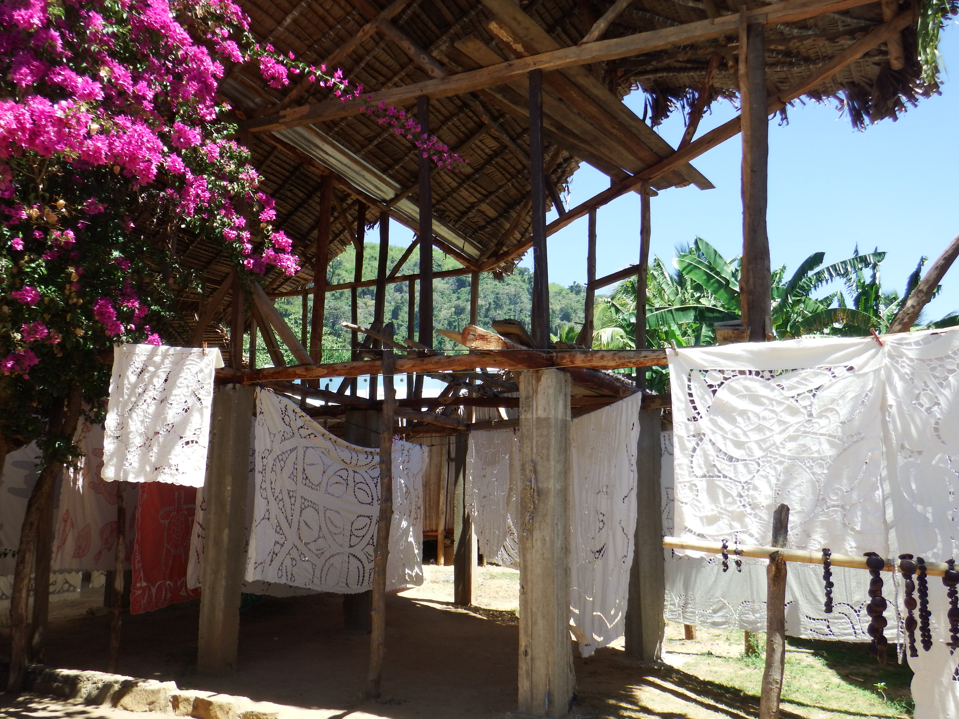 The next morning we went ashore with Kevin and Jacqui of Tintin to explore. The village was very authentic and pretty. At first it looked like peoples washing blowing in the wind but we realised it was beautiful hand embroidered tablecloths for sale.