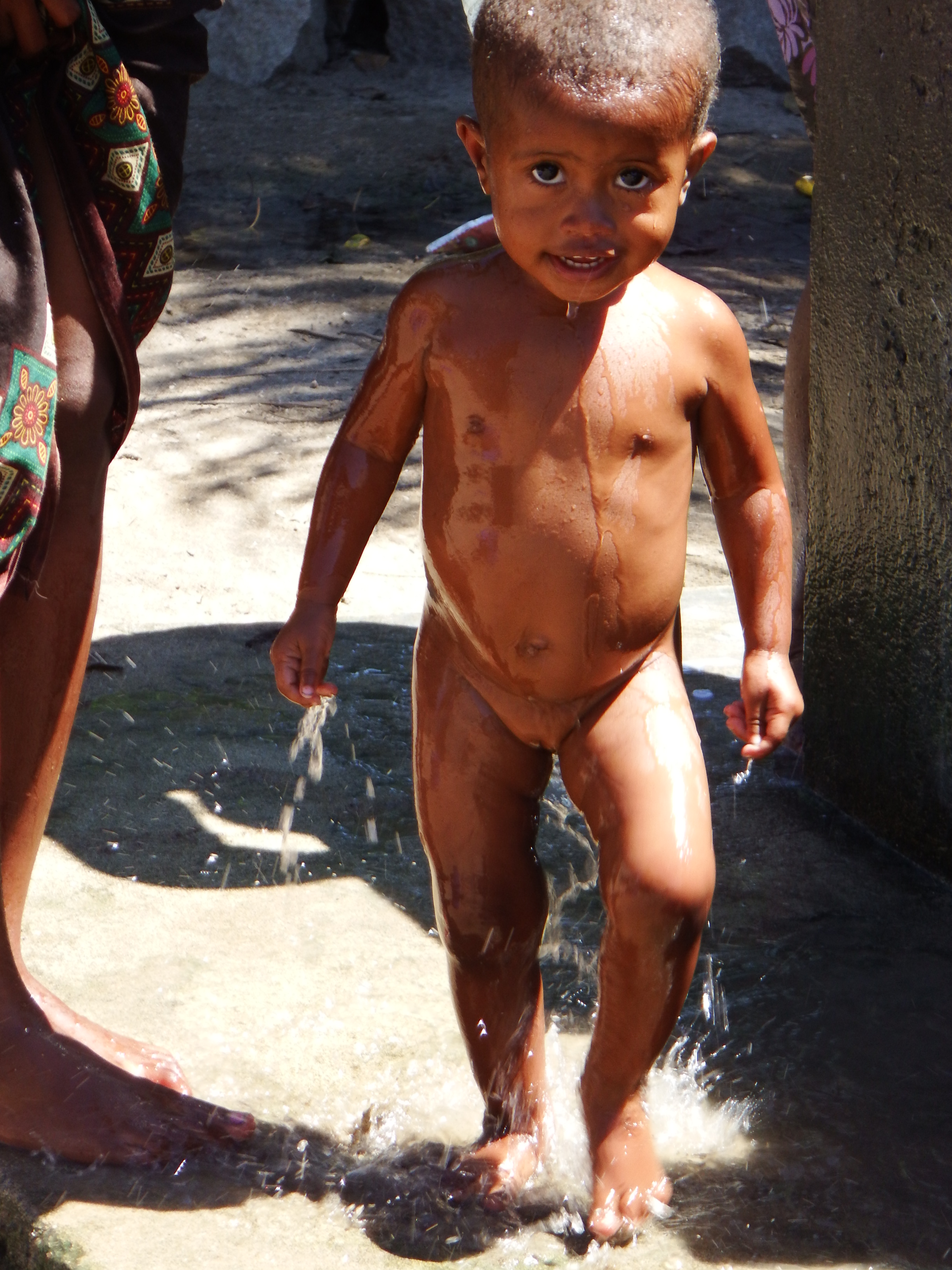 One of the few children we saw with shoes on.