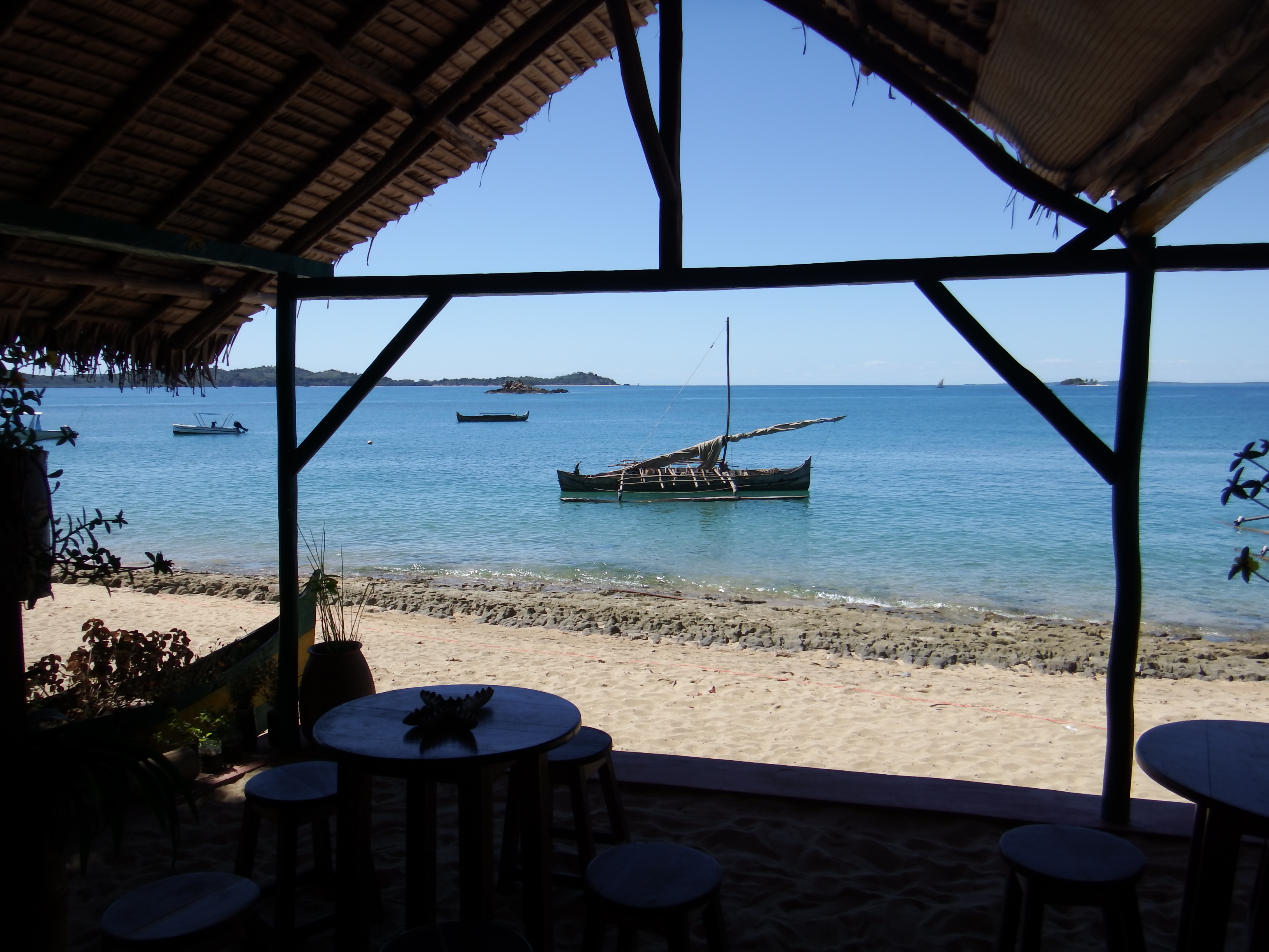 Tuesday we motored back to Hellville to see our friends on Norsa and Solstice arrive from Mayotte. We all went ashore so they could check in and then met up later for lunch at our favourite cafe called the Oasis. Built in a Parisian street cafe kind of style the food is very good but the best are the chocolate brownies with a nice cappuccino. Yum
