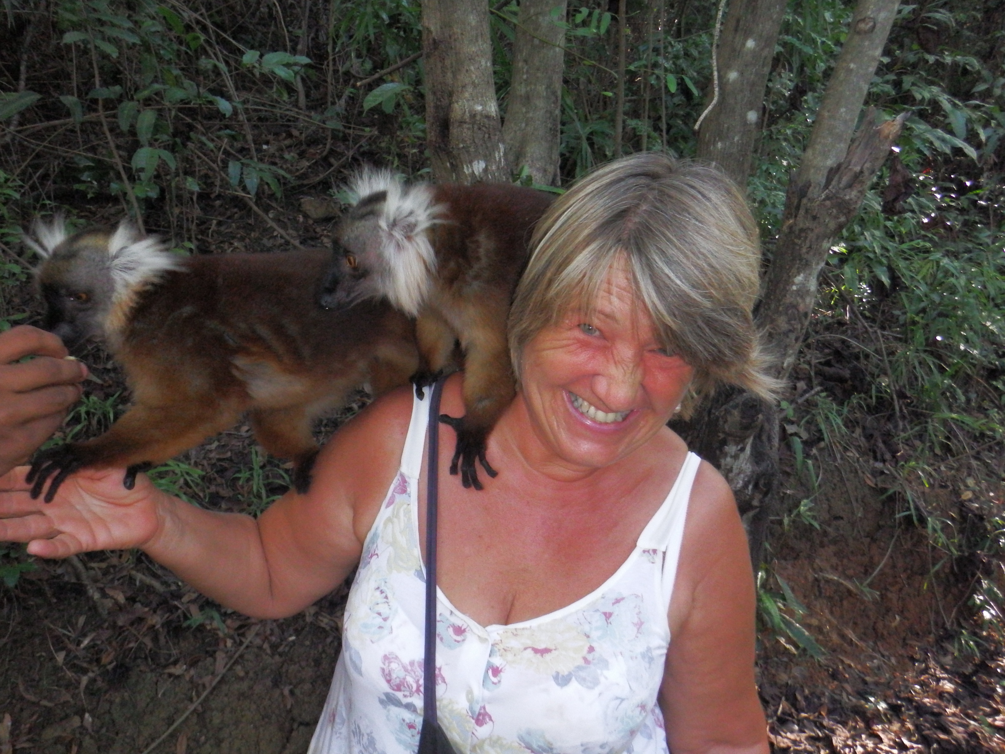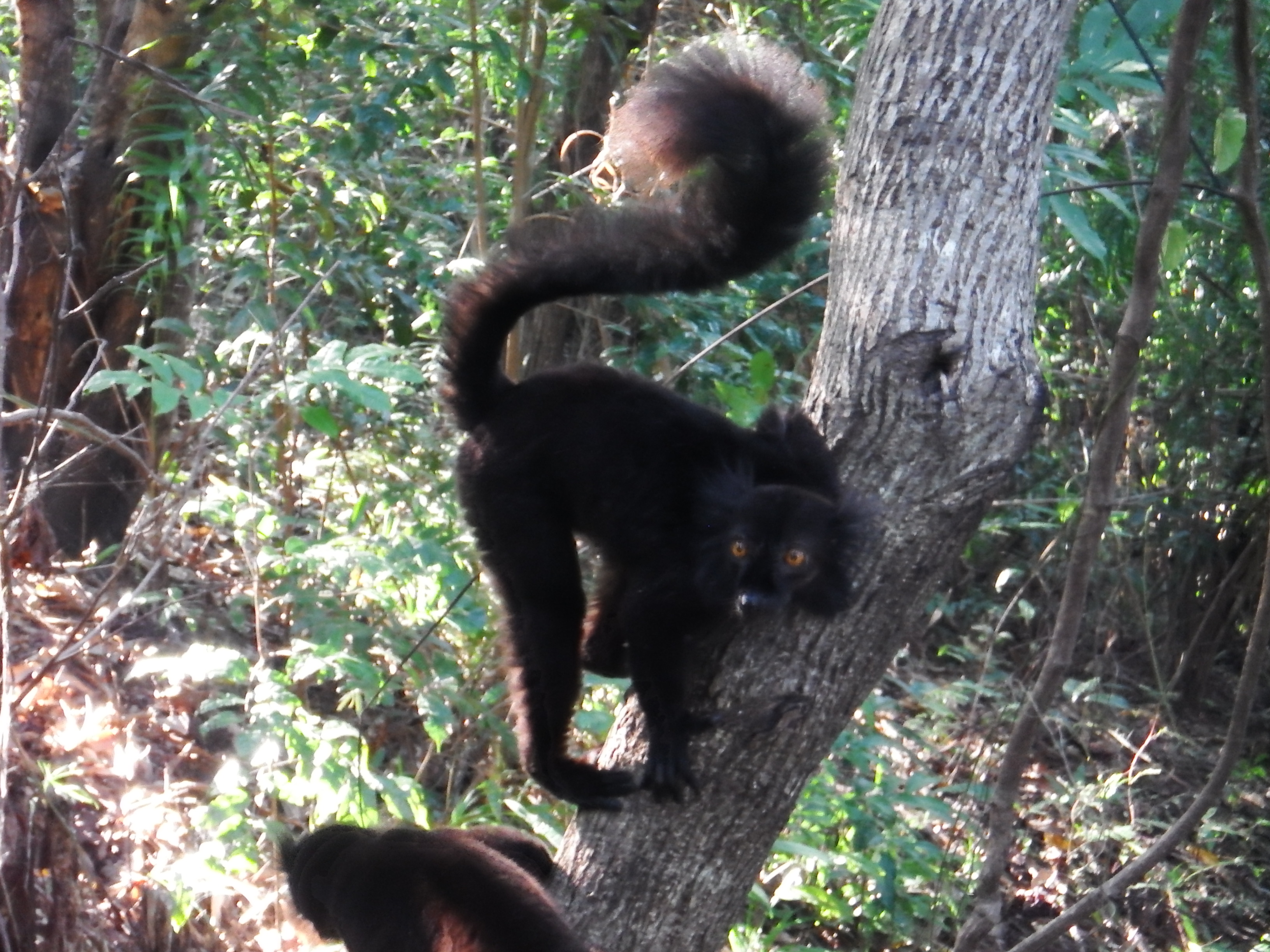 It was very funny watching them jump from tree to tree. So many of our photos have half a lemur in them.