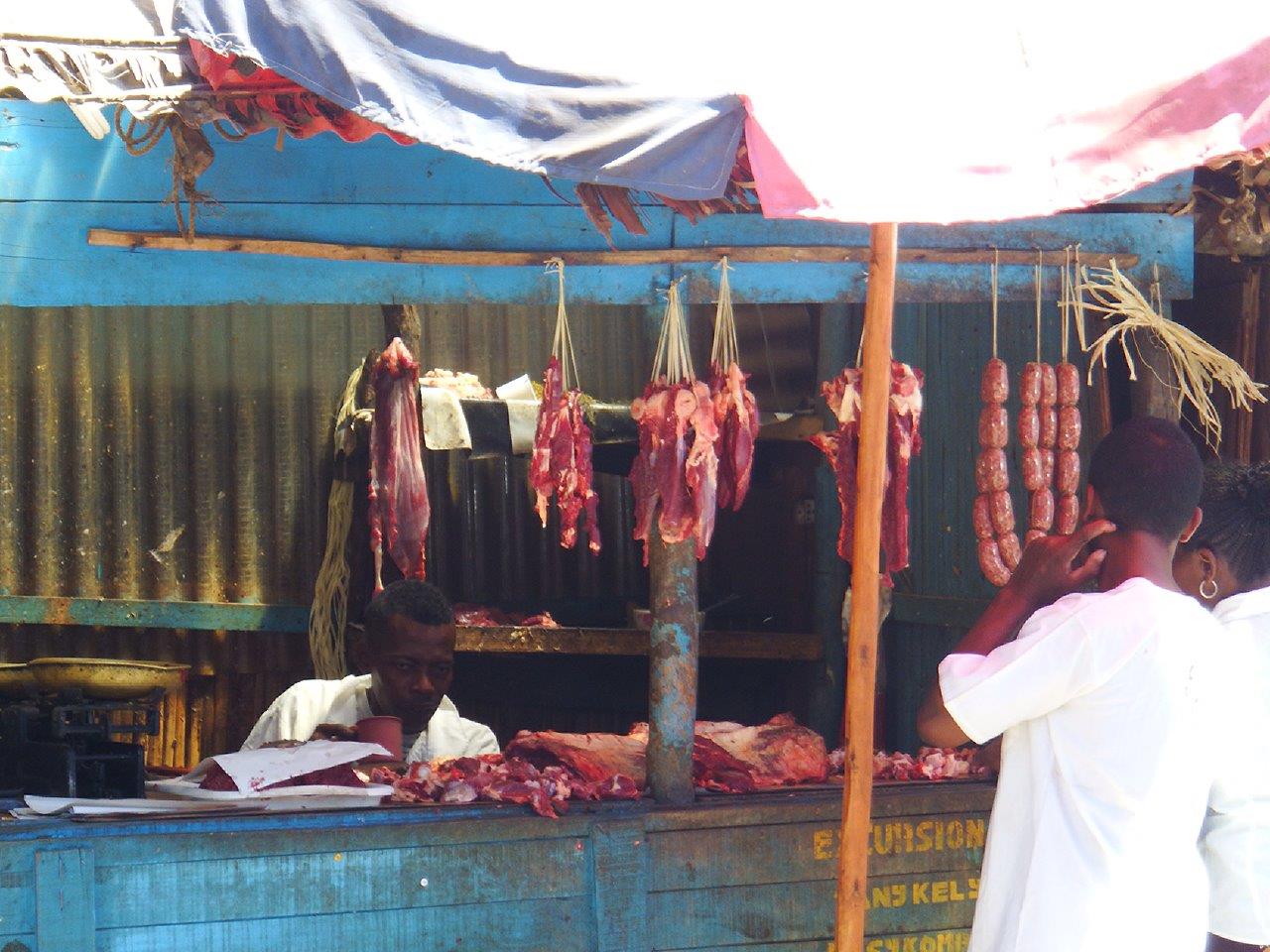 Next door was the butcher – unbelievable! The meat was covered in flies and we were told if you buy it early enough before the flies get on it , it’s ok! Err no, call me old fashioned but I would rather not share my meat with the flies. Not sure if it’s put in a fridge overnight because it looked fairly fresh but it wasn’t going to be good for our western stomachs.