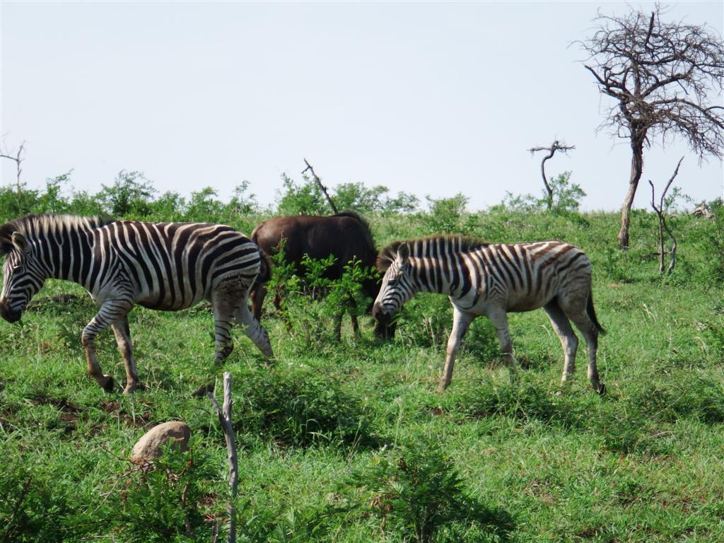 As luck would have it as we were driving along the track a crash of rhinos were spotted (sounds like a Camomile quiz question to me!) the collective name for a group of rhinos. They were white rhinos, black rhinos are smaller and very hard to spot, sadly we didn’t see any of those. Despite the parks best efforts these creatures are still hunted for their horns. As we watched the rhinos helicopters were circling in the distance watching out for poachers from Mozambique. Steve said there is zero tolerance towards poachers and they are shot on sight. No beating about the bush in South Africa These were our first sighting of one of the big 5.