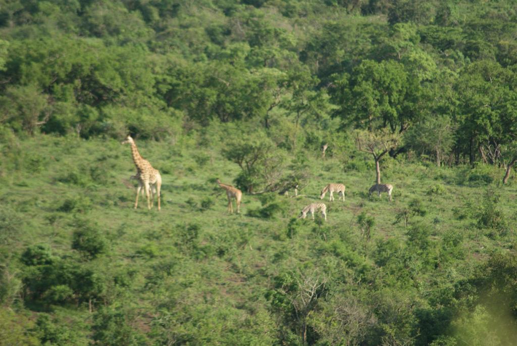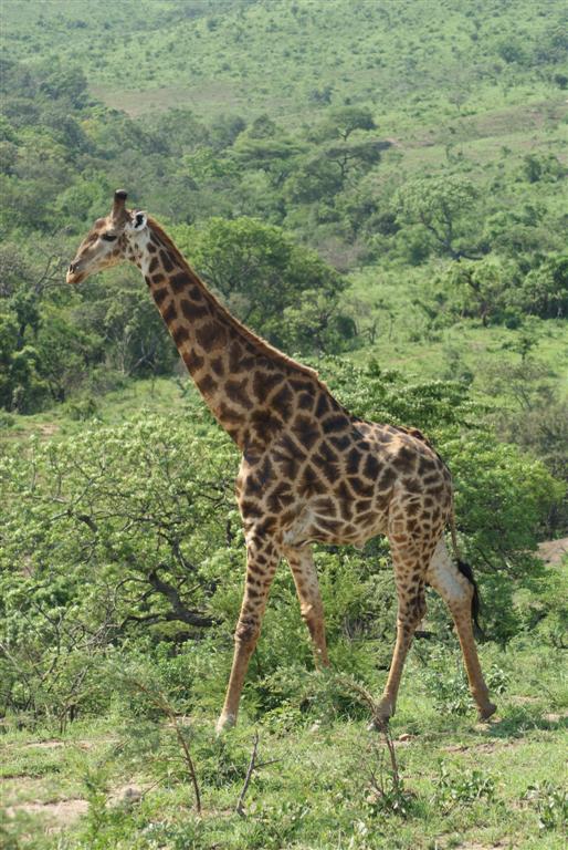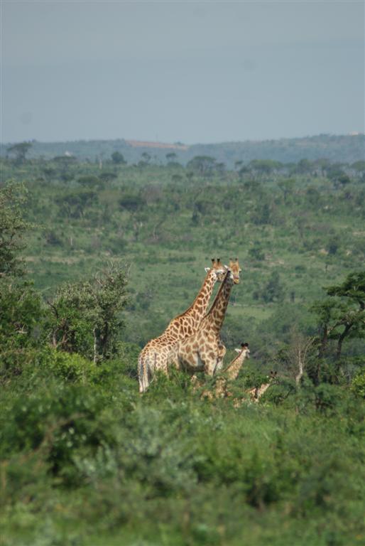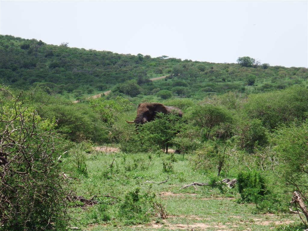 Hluhluwe-iMofolozi (pronounced shloo-shloo-wee-im-for-lozi) park covers 960 sq km (3 times the size of the Isle of Wight) a lot of which is mountainous landscape so unlike ‘safari parks’ (read zoos) back home it’s quite difficult to spot the animals. Its possible to drive yourself but you’re much higher in the jeep. The first animals we came across were impala, pretty little things, as common a sight as sheep in our countryside, but Steve said their tails form a letter M on their bottoms which he said stands for MacDonalds, yes these dear little creatures are the fast food of the game park. All of the big cats eat them.